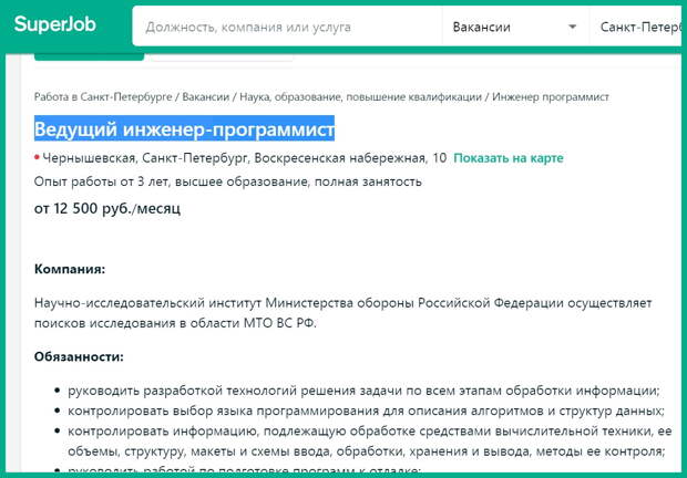 Программисты, техническая элита России, прозябают в бедности. Прожиточный минимум в Петербурге для трудоспособного населения — 13 тысяч рублей. Посмотрите на скриншот — программисту предлагают на 500 рублей меньше прожиточного минимума, всего лишь 12,5 тысяч. Видимо, недостающую сумму придётся ежемесячно выпрашивать у жены или у родителей.