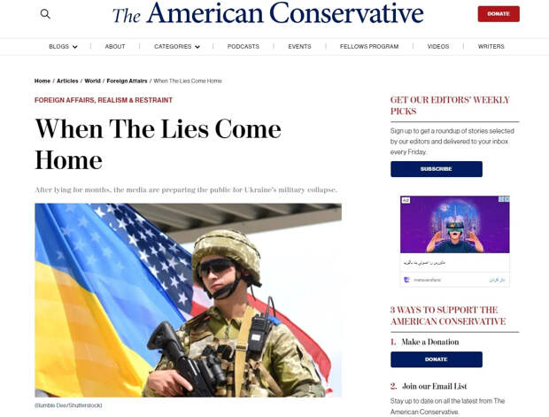 Украина могла бы тихо уйти под воду, как Титаник, не вызывая особого беспокойства у американского электората. Опытные политики знают, что внимание американцев к вопросам за пределами Америки настолько невелико, что признание поражения на Украине, вероятно, имело бы незначительные последствия